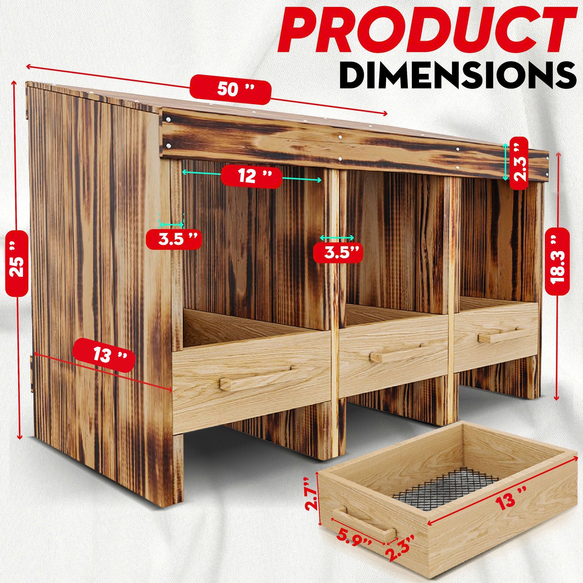 Цей міцний курник побудований для довговічності та стійкості до погоди. Він побудований з твердої ялиці з дерева з панелями товщиною 1,5 см, що забезпечує міцну раму. Зовнішні розміри Coop - 127 × 33,02 × 63,58 см (довжина × ширина × висота), пропонуючи просторий інтер'єр, зберігаючи компактний слід, придатний для використання заднього двору.